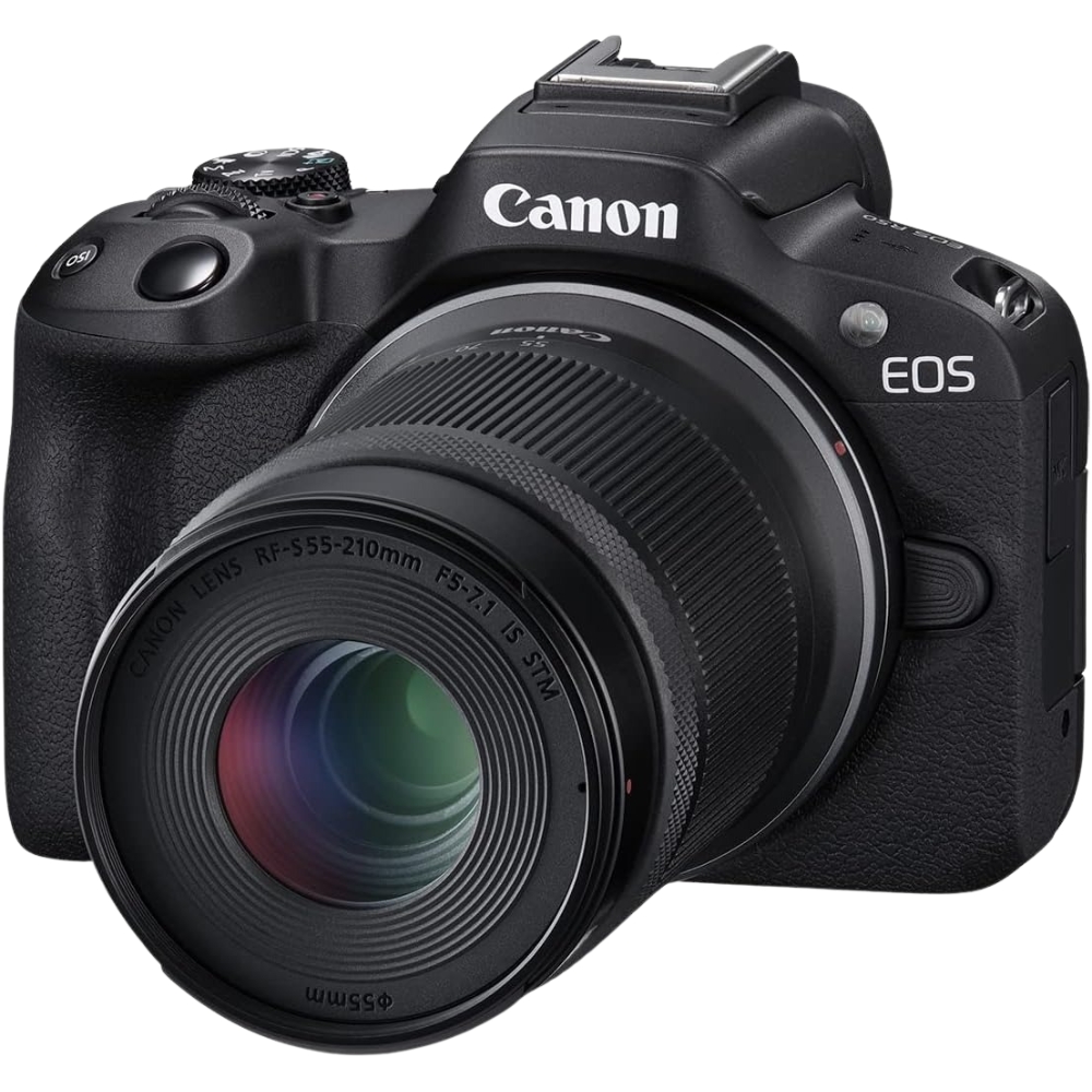 Desperte seu potencial criativo com o Kit Canon EOS R50 Mirrorless, composto pelas versáteis lentes RF-S 18-45mm f/4.5-6.3 IS STM e RF-S 55-210mm f/5-7.1 IS STM.