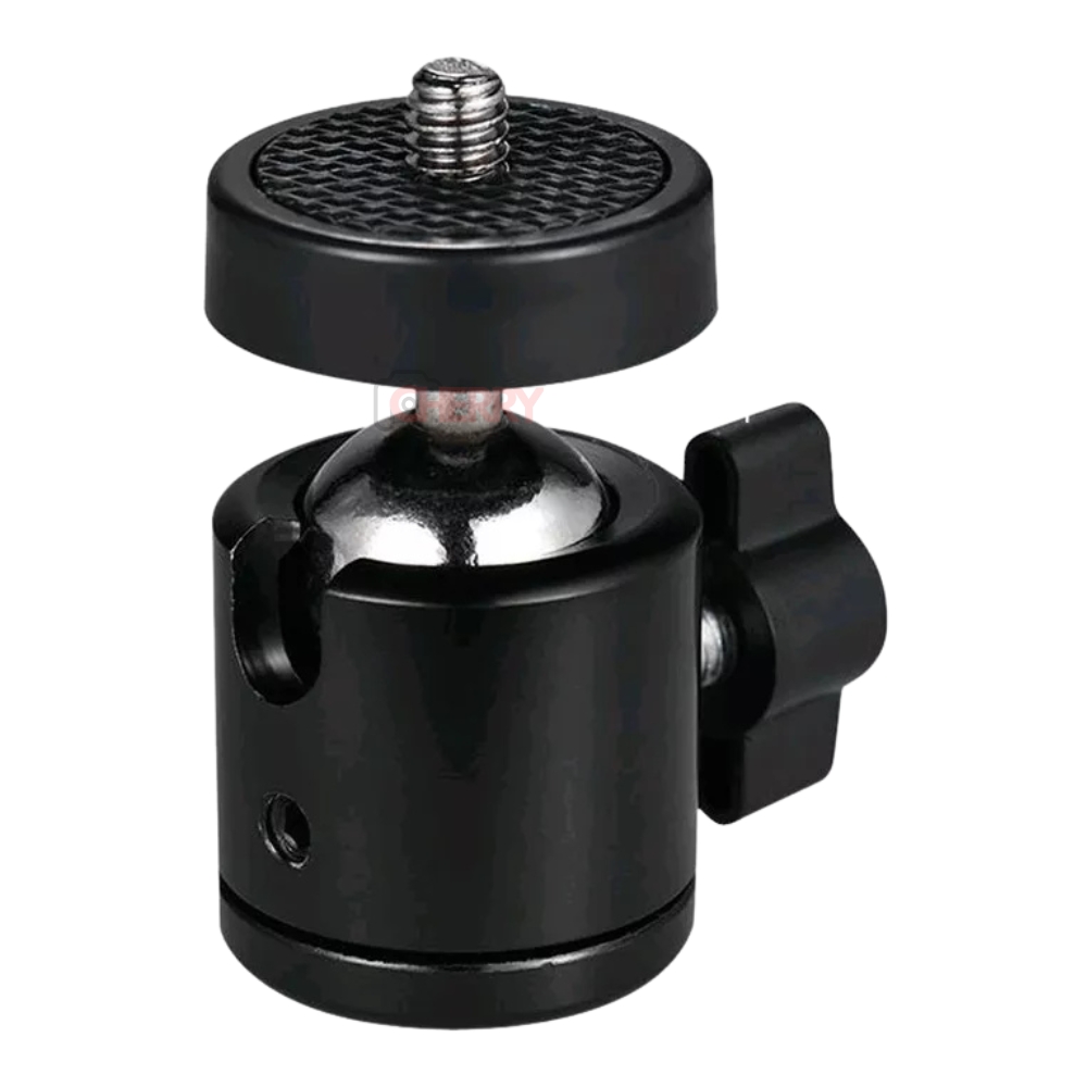 O engate da Mini Cabeça Ball Head Greika YA413 na câmera ou iluminador dá-se através do pino padrão que localiza-se na extremidade superior. Também é possível encontrar em sua estrutura um parafuso do tipo borboleta na lateral que serve para travar a estrutura da esfera, deixado o equipamento fixo em uma posição e angulação. Além disso ainda conta com um encaixe tamanho 1/4 na parte inferior de sua estrutura, que permite a fixação da cabeça em equipamentos como mini tripés, tripés, monopés, sliders e outros (não inclusos).