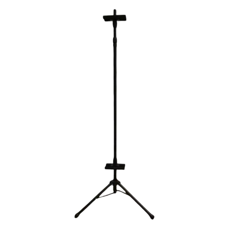 Pedestal é composto por hastes de alumínio com acabamento em pintura preta e com suas conexões e acabamentos feitos em nylon preto, dando a ele um suporte resistente e uma aparência elegante. Possuí ajuste de altura de engate rápido.